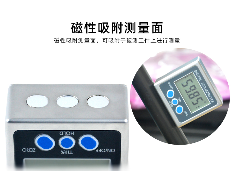 磁性吸附测量面:底部带3片直径为10mm的强磁,可吸附于被测工件上进行测量