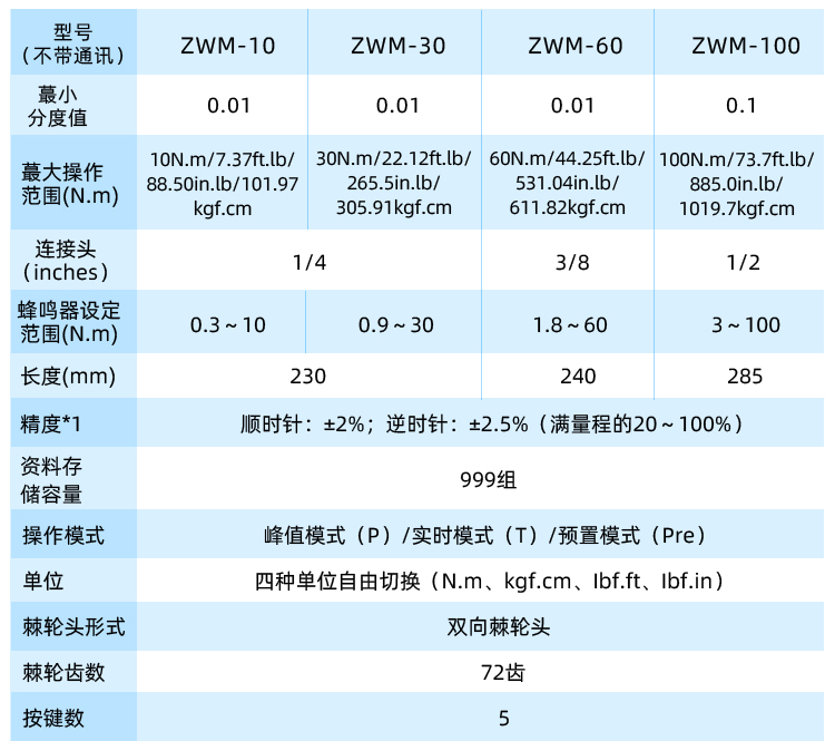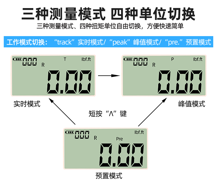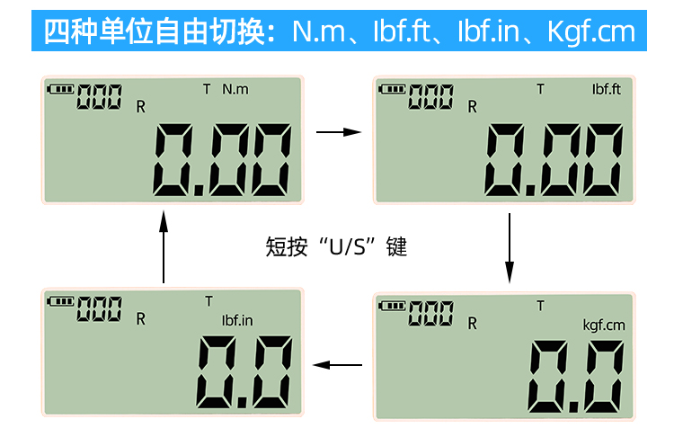 - 单位:四种单位自由切换(N.m、kgf.cm、Ibf.ft、Ibf.in)