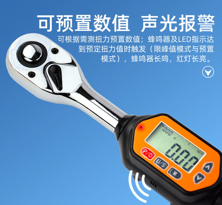 - 预警功能:达到预定扭力值时,声光报警